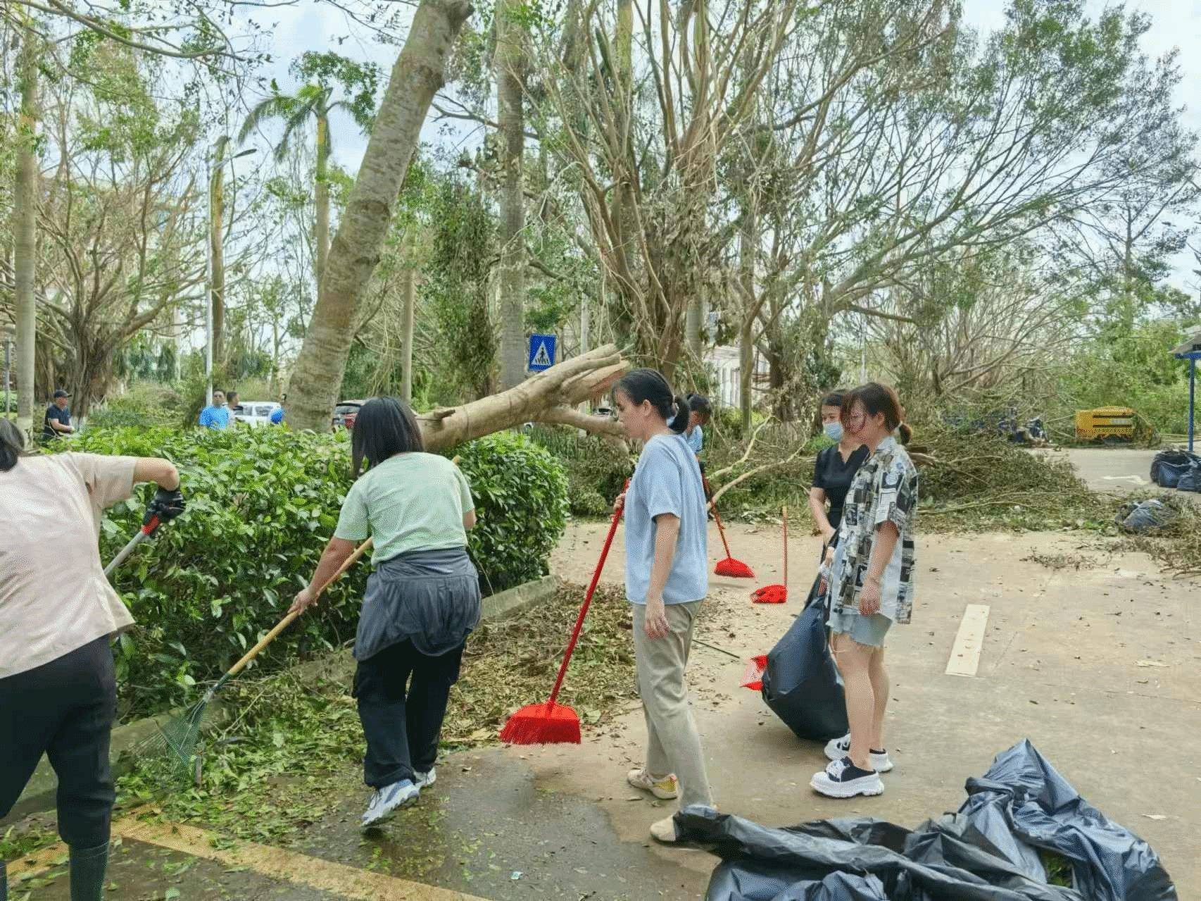 2024年9月6日下午至夜间,超强台风“摩羯”肆虐海口,海经贸校园受损严重。9月9日复工首日,bat365官网登录在线主页全体人员迅速行动,齐心协力排除道路障碍,搬移清理倒伏树枝和杂物。他们不畏艰难,奋战在重建一线,用实际行动诠释了责任与担当。经过不懈努力,学术交流中心周围道路恢复畅通,为师生复学创造了良好条件。
